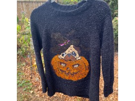 Gently loved. Tag removed. Generous size small would be my guess. Sparkly yarn and design.