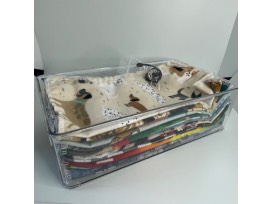 0Acrylic tray filled with soft flannel cloths for wiping up spills, cleaning countertops, drying glasses, just about anything! Wash and reuse over and over.