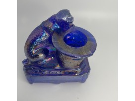 Cobalt blue pug dog with top hat toothpick holder.