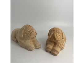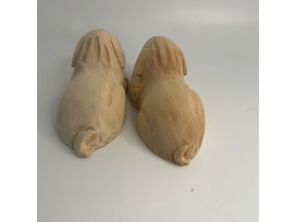 In honor of all the pairs we have taken in this year. 2 hand carved pugs. Light wood.