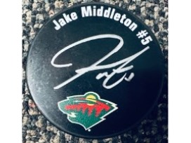 Signed Picture by current Wild Defenseman #5 Jake Middleton and matching signed collectors Puck.