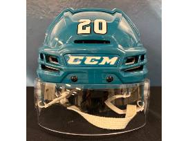 CCM Tacks Teal Helmet Worn and Autographed by #20 Fabian Zetterlund