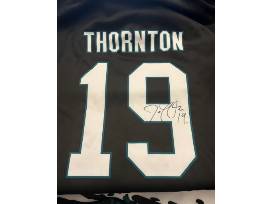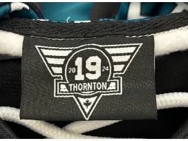 - Note: Joe Thornton's authentic signature is on the back of the hoodie - signature seen on the front of the hoodie is part of the design and printed on jersey