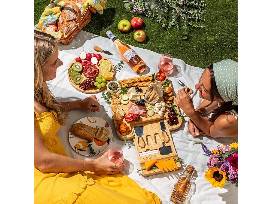 - Bamboo Charcuterie Board with Pocket Drawer (Set includes cheese knives and spreaders, a matching bamboo fruit tray, condiment cups and slate food labels)