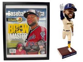 Get ready for a great game with four tickets to see the Brewers take on the Braves on June 10. Enjoy the action and take home a Jackson Chourio bobblehead plus a signed November 2023 Baseball America Magazine cover, making it a perfect game day experience for any fan.