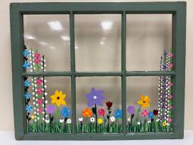 About the piece: I thought it would be cool to paint flowers on an old window. I love flowers particularly because my middle name is Rose, and flowers are some of the most beautiful of God's creation!