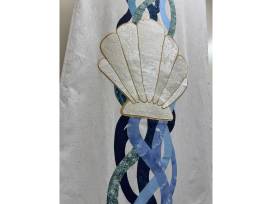 About the piece: This banner serves as a reminder of how much our baptism means- we reflect on the water of our baptism that became powerful for salvation through the redeeming Word of Christ. I wanted this piece to be clean and flowing. Creating this piece was one of the longest tasks I have ever done - taking 20+ hours to bring it to completion!
