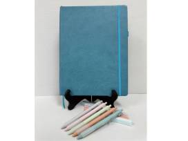 8.5 x 11 in teal soft cover journal with soft pastel highlighters and gel pens