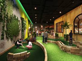 Tucked beneath the streets of New York City, be transported to a world of verdant, undulating crazy golf courses, a 1920s English golf clubhouse, cocktail bars and gourmet street food vendors.