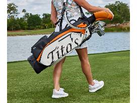 Tito's Golf Bag, Umbrella, Soccer Ball, 1 Bill Murray Tito's Men's L, & 1 Women's L, 2 bottles of Tito's, bottle toppers & coozies