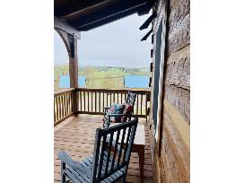 High up on the hill, find Blue Willow Cabin, a beautiful designer decorated cabin with incredible 180-degree views of the Meadows of Dan, VA.