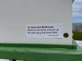 One of a kind handmade birdhouse with a shingled roof. Handy cleanout area in back. Spoil your fine feathered friends.