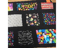 Wrap yourself (and your feline friend!) in love with this stunning 82" x 82" cat-themed quilt, lovingly handcrafted by expert quilter Karen. Every stitch of this cozy masterpiece reflects the heart, talent, and time poured into creating it-all to support pets still waiting for their forever homes. Made with washable, durable fabric, it's as practical as it is beautiful-perfect for curling up with your purring companion. A true work of art that warms both body and heart.