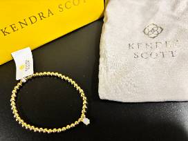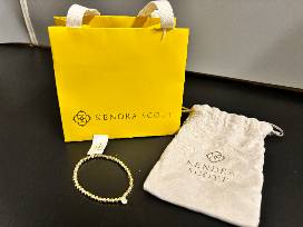 Kendra Scott is the artist known for this simple gold bead with pearl white stone bracelet that will add a touch of class to any outfit!