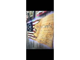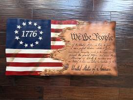 - Handcrafted wooden American flag featuring the "We the People" inscription
