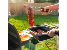 For mess-free prep for your next BBQ, the Drip EZ Classic Black Bundle Prep tub has you covered! This tub is perfect for applying dry rubs or marinades without spilling. It also collapses so you can use the built in cutting board after your food comes off the grill. After Prep is done, clean it out and fill it with ice to keep your beverages cold. The collapsible design makes the Drip EZ tub compact for space-saving storage. A locking lid stays secure when moving or for temporary food storage.