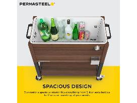 The Permasteel outdoor cooler for patio and deck offers plenty of space to store up to 110 12-oz cans or 50 bottles plus extra room for ice.