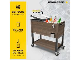 Permasteel 80-Quart Outdoor Patio Cooler with Wheels | Beverage Rolling Cooler for Backyard Deck, PS-A205-80QT-BR, Wood Grain Accent, Brown