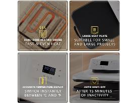 Our heat press 15x15 could reach a common-use temp of 320℉ /160℃ within 4 mins, twice faster as regular ones. And you will save nearly 130s when heating up to 410℉/210℃ compared with other auto heat press. Combined with NTC thermistor technology and a dual-tube heating engine, this t shirt pressing machine distributes heat evenly and holds the temperature well. HTVRONT large heat press allows you always have a clean and professional transfer