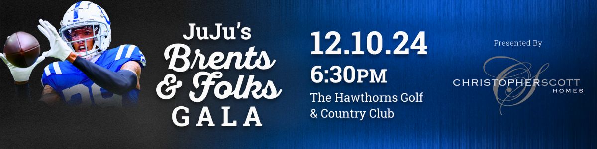 You can still participate in the auction!Join Indianapolis Colts cornerback Julius "JuJu" Brents as he hosts his inaugural "Brents & Folks Gala", Presented by Christopher Scott Homes, on Tuesday, December 10, 2024 from 6:30 PM to 9:30 PM ET at The Hawthorns Golf and Country Club in Fishers, IN.