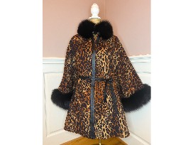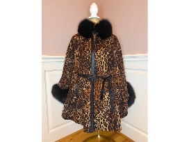 Kelli Kouri Designs Leopard Cashmere Cape Trimmed in Black Fox Fur.