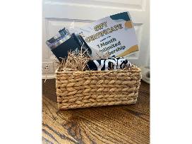 - Gateway Yoga basket with certificate for 1 month unlimited classes, tumbler, performance tshirt (size L), notebook