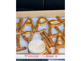 Note: WG Ice Rink is closed for maintenance March - August 2025. - Large custom Pretzel Boy's pretzel or "Happy Birthday" pretzels, pretzel party tray with mustard & large cheese dip. Feeds 20.