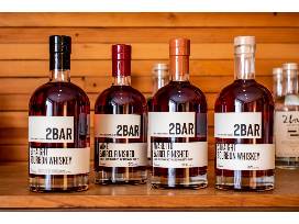 Bottles include 2BAR Straight Bourbon Whisky and 2BARD Spirits Counterbalance Whiskey.