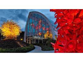 Located at Seattle Center, Chihuly Garden and Glass brings together all the elements of artist Dale Chihuly's work, including Drawings, iconic glass creations, large architectural installations, and personal collections. This long-term Exhibition features indoor galleries, the Glasshouse, and an ever-changing Garden, along with live glass demonstrations, a Theater, and The Bar at Chihuly, which features items from Chihuly's personal collections.