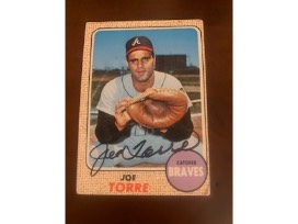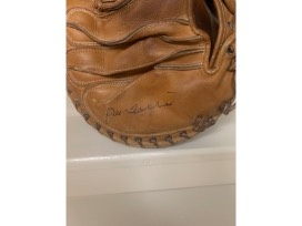CLASSIC OLD CATCHERS MITT DOUBLE SIGNED BY JOE WITH AUTOGRAPHED 1968 TOPPS BASEBALL CARD