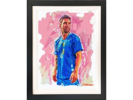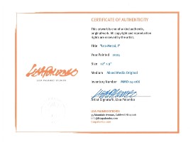 Mixed media original, 12" x 15" framed, custom high-quality black wood frame and white linen liner