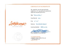 Mixed media original, 12" x 15" framed, custom high-quality black wood frame and white linen liner.