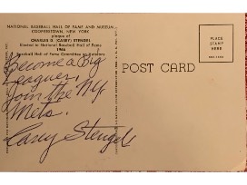 FRAMED 5" X 7" AUTOGRAPHED HALL OF FAME POST CARD WITH HAND WRITTEN MESSAGE FROM CASEY ON THE BACK