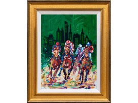 Mixed media original, 16" x 13", custom high-quality gold wood frame and white linen liner