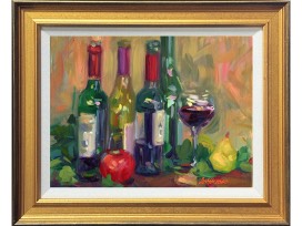 Mixed media original, 13" x 13", custom high-quality gold wood frame and white linen liner