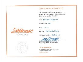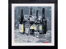 Mixed media original, 13" x 13", custom high-quality black wood frame and white linen liner