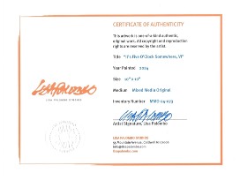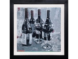 Mixed media original, 13" x 13", custom high-quality black wood frame and white linen liner