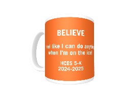 11oz ceramic mug featuring your child's image and "Believe" statement. Background colors will be custom selected to coordinate with student's object.