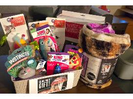 Pamper your favorite feline (or yourself!) with this delightful cat-themed package! Your kitty will be entertained for hours with an array of interactive and plush toys, including a Hunt & Swat Play-Activated Toy, Mix & Match teaser toys, a Frog on a Lilypad Catnip Toy, and a Kong Chirping Laser Bird. Keep them looking stylish with three breakaway cat collars, and set the mood with a Mister Catnip Diffuser. While your cat plays, you can cozy up with the ultra-soft Greg Cuddeford Plush Blanket and enjoy a delicious meal with a $25 gift certificate to Lou Malnati's Pizzeria. The set is completed with a charming bejeweled cat figure pill box-a purrfect keepsake for any cat lover!