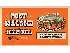Get ready for an unforgettable night of music with four premium tickets to Post Malone Presents: The BIG ASS Stadium Tour featuring special guest Jelly Roll, live at Gillette Stadium in Foxborough, MA on May 31, 2025! You'll be singing along to chart-topping hits and soaking in the electric atmosphere from Section 111, Row 37, Seats 20-23-a fantastic view to catch all the action. Whether you're a die-hard fan or just love a night of great music, this is your chance to see two of the biggest names in music light up one of New England's most iconic venues.