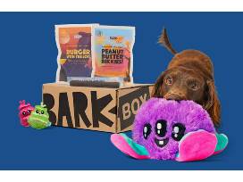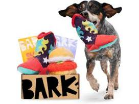 BarkBox for one month, each box contains 2 fun toys, 2 bags of natural treats, and 1 surprise item.