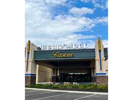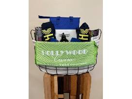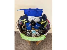 A basket of items from Hollywood Casino including 8 tickets to their Outdoor Concert Series, various scratch off tickets, and a $150 gift certificate for dining at the casino. The basket also includes some Hollywood Casino SWAG.