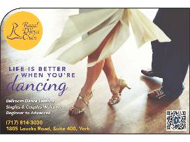 Regal Dance Club certificate which includes: 3 private ballroom lessons, 1 group class and 1 practice party.