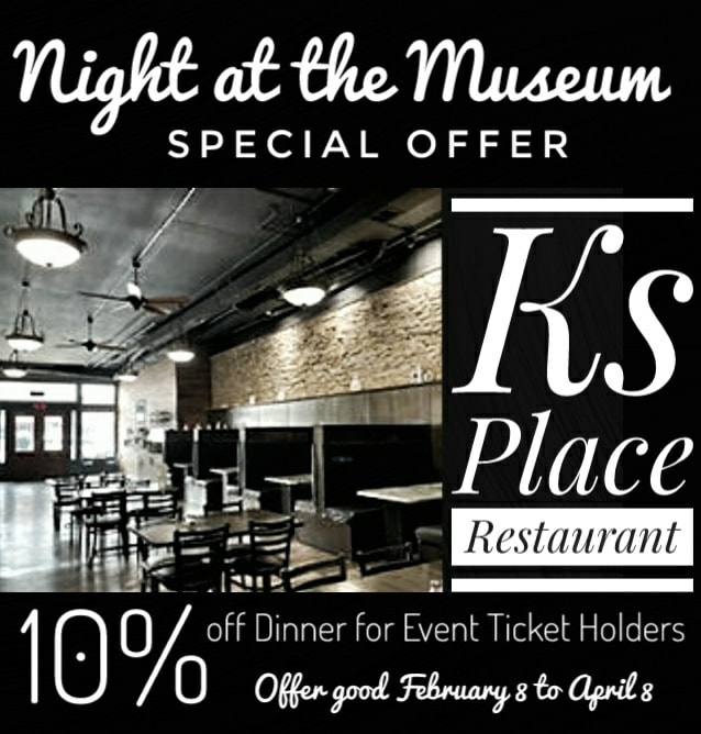 Many thanks to Kayla Lair for offering 10% off her scrumptious dinners to each Night event ticket holder! The coupon will be good for two months & will be given at Night at the Museum check in on the 8th.