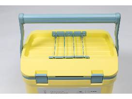 - Two (2) 16-quart hard-sided Stanley coolers in yellow and blue