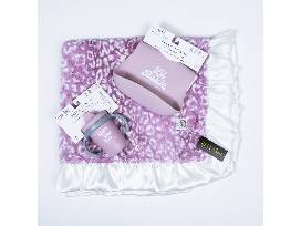 - Soft, plush cheetah print blankie with satin trim in shades of blush and lavender