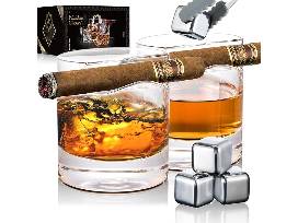 A bottle of Booker's Bourbon, 2 whiskey and cigar holder glasses, four stainless-steel reusable whiskey stones along with stainless-steel ice tongs and a $50 gift certificate to Cousin's Cigar - Avon.