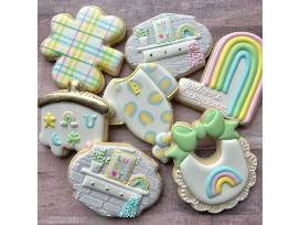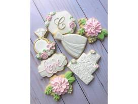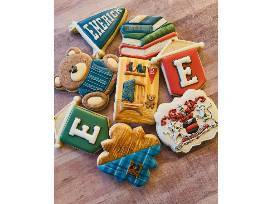 A certificate for two dozen custom designed and decorated cookies from Confection Perfection by Jeanette. Please allow 3 weeks to order cookies. May of 2025, Valentine's Day and Christmas excluded. Expires 4/5/2026. You will also receive an $18 gift card to Peace, Love & Little Donuts.