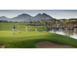 A foursome of golf at the stunning Copper Canyon Golf Club, 27-hole championship golf course designed by Lee Schmidt and Brian Curley. Generous fairways look overly inviting to the golfer's eye, yet are only the gateway to large, undulating greens that have become a trademark.
