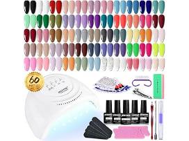 - Gel Nail Polish Set: The set contains 55 bottles of colored gel nail polish, two bottles of base coat, two bottles of glossy topcoat, one bottle of matte topcoat, smart nail lamp and various manicure tools.